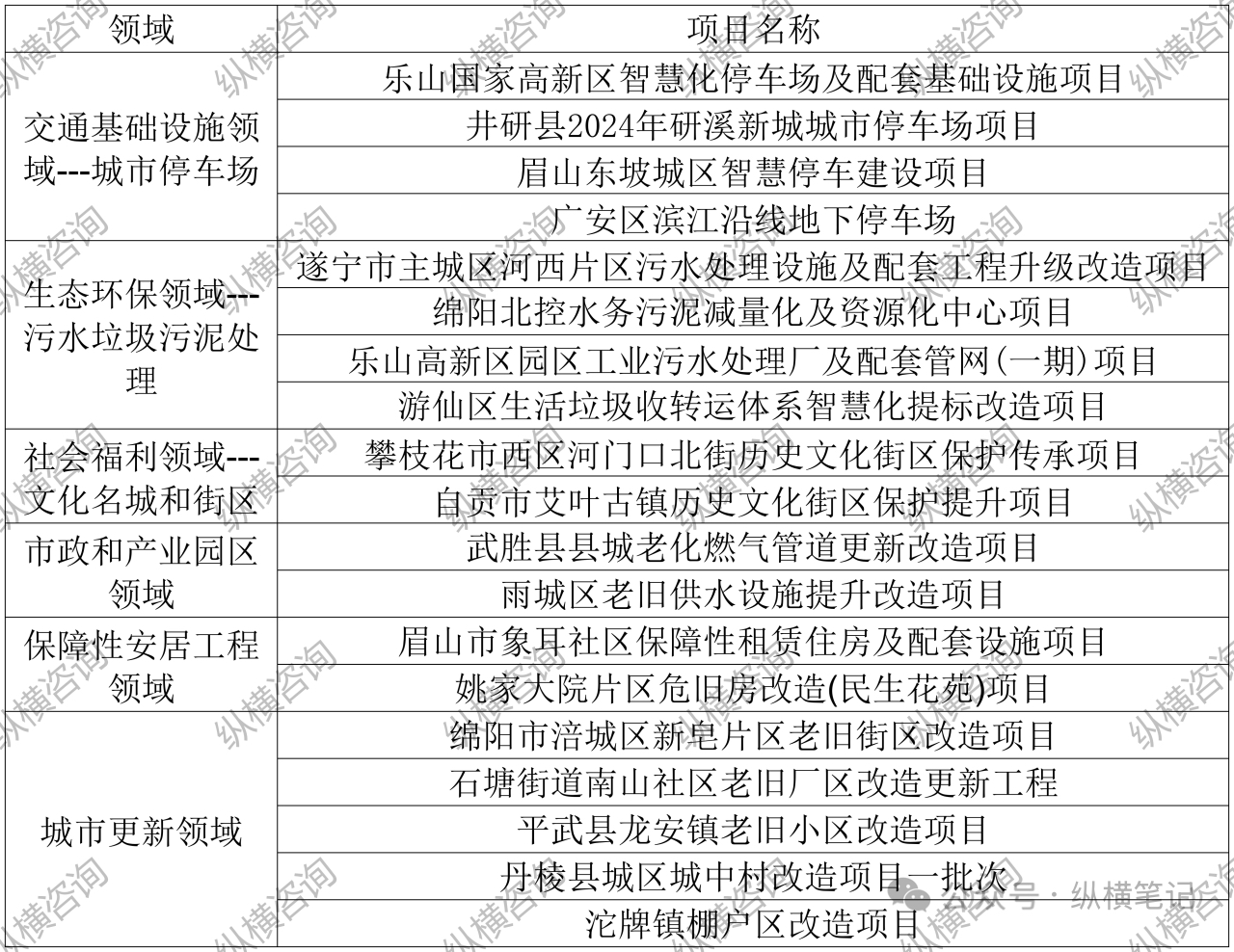 本次我们整理了四川省最新发行的两批专项债项目表,从中筛选了各个领域的项目,以下为项目领域和具体项目名称。建设内容以及发行金额等详细信息可以登录债券信息网查询。