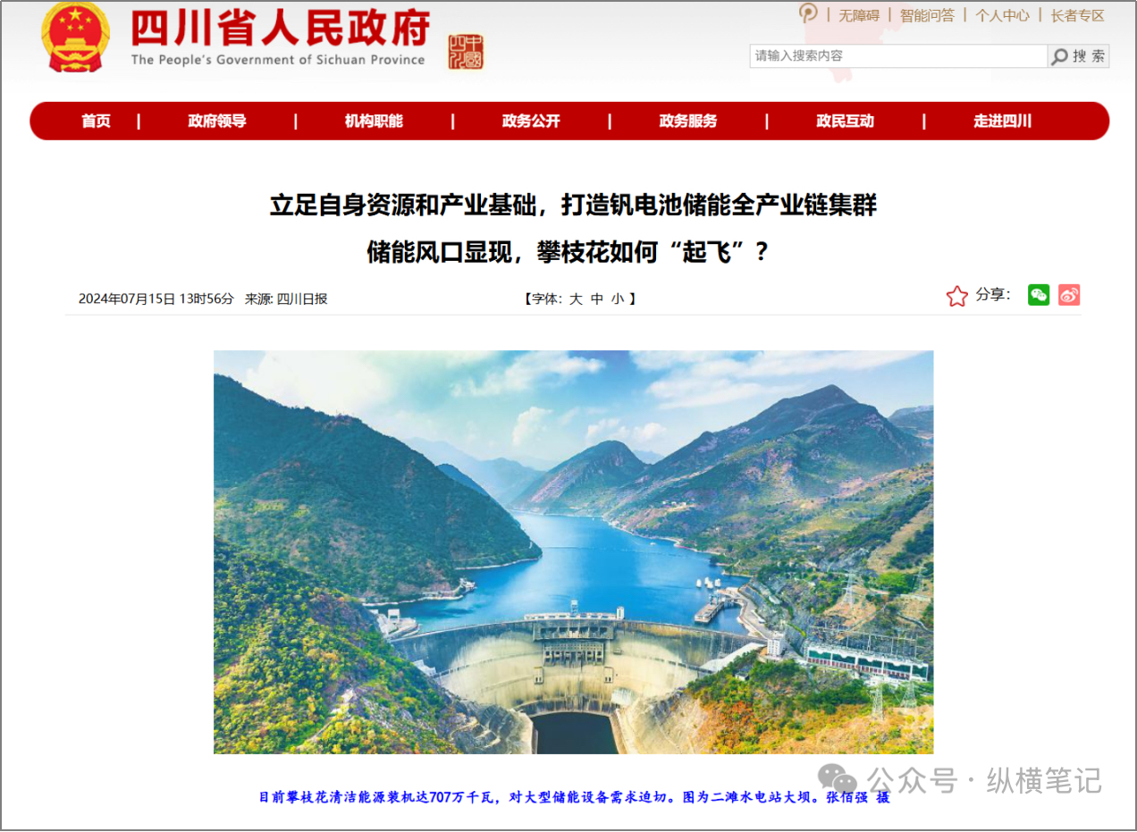近年来,攀枝花提出打造“中国钒电之都”,2023年,攀枝花发布全省首个新型储能规划《“中国钒电之都”——攀枝花市钒电池储能产业发展规划(2023—2030年)》,加快钒电池产业布局。2024年底,国家电投集团四川攀枝花100MW/500MWh全钒液流储能电站示范应用项目开工。项目建成后,输出功率可达百兆瓦级,储能容量达到500兆瓦时,相当于一次能充放50万度电,是全国在建规模最大的钒电池储能示范应用项目。