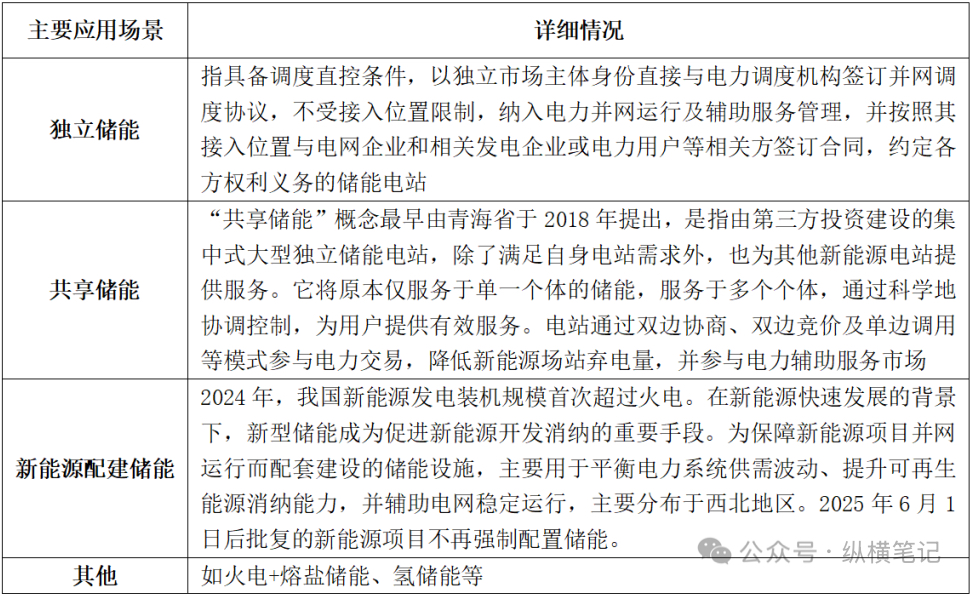 新型储能技术的不断发展、积极的政策引导以及市场投入等使得新型储能应用场景不断丰富,主要应用场景如下: