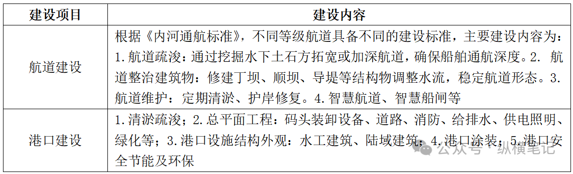 四、航道及港口建设实施关键要件 1、主要建设内容