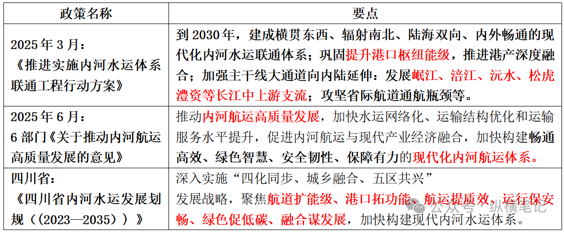 六、结语 内河航运作为服务国家发展的黄金纽带、经济循环的核心通道、区域协调的关键引擎,其建设发展能够进一步促进区域经济发展、加强市场要素流通、构建全国统一大市场。因此在内河航运发展规划和政策引领下,通过项目策划和资金筹措破除航运基础设施不足、航道联通不足、多式衔接滞后、科技水平不高等发展瓶颈,推动内河航运高质量发展! 文章已发表于四川纵横工程管理咨询有限公司微信公众号——纵横笔记,搜索公众号,可查看更多。
