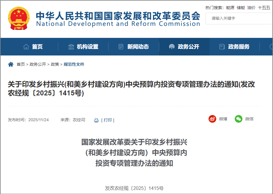 2025年11月24日,为贯彻落实党中央、国务院关于乡村全面振兴的决策部署,加强和规范和美乡村建设项目管理,根据《政府投资条例》及中央预算内投资管理等有关规定,国家发改委印发了《乡村振兴(和美乡村建设方向)中央预算内投资专项管理办法》(以下简称“办法”),《办法》通过明确资金支持方向、规范管理要求等,给地方政府的工作边界、资金统筹、责任落实等多方面带来显著影响,地方政府也需针对性制定行动策略。