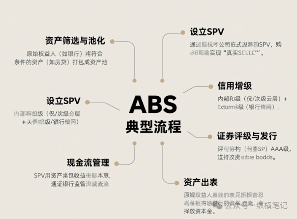 作为一种较为复杂的结构性融资手段,可能有读者朋友依然对此感到疑惑,那么接下来以通俗易懂的方式来讲述ABS:想象你有一堆“未来能下蛋的母鸡”(比如房贷、车贷、信用卡欠款),但你现在急需用钱,此时ABS就像一个“金融魔法师”,把这些母鸡打包成“鸡蛋期货”,卖给投资人换钱,而你拿到钱继续养鸡,投资人等母鸡下蛋后收利息。也可以理解成房贷变“鸡蛋期货”:银行把1000个人的房贷捆成“养鸡场”,切成A(保本蛋)、B(中风险蛋)、C(高风险蛋)三档,卖给大爷大妈、基金、银行,对你而言每月还的房贷,先喂饱A档的蛋,剩下的分给B、C档。