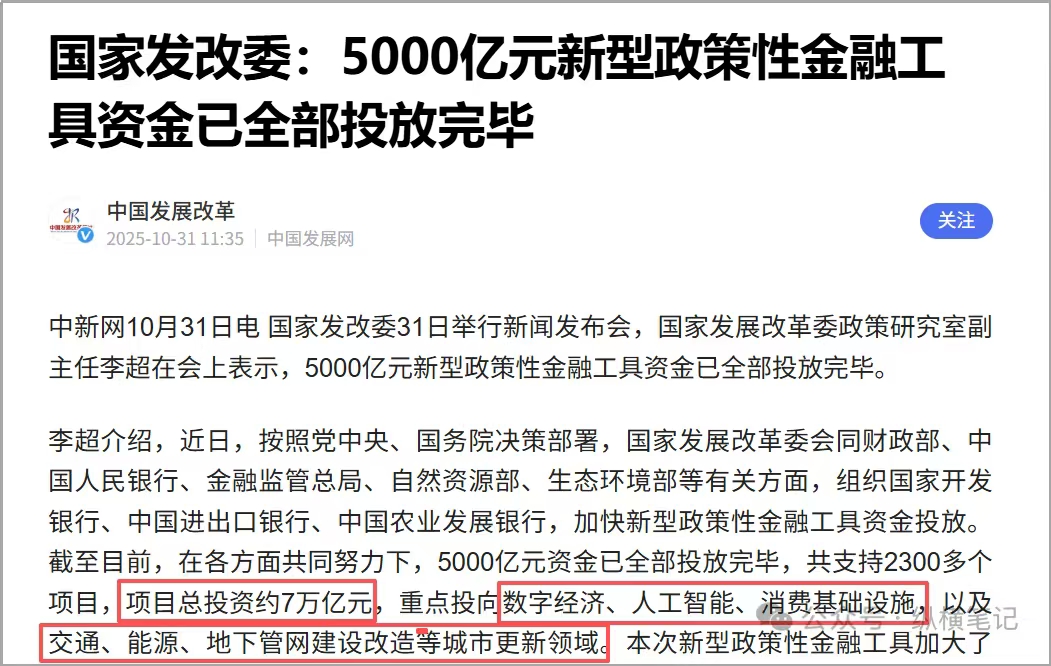 预计3年内可带动整体投资增加8-10万亿元(国家发改委数据2025年5000亿元政策性金融工具带动7万亿元总投资),为新质生产力发展、基础设施升级、民生保障完善注入强劲动力,成为企业、地方政府抢占发展机遇、破解资金难题的“关键钥匙”。