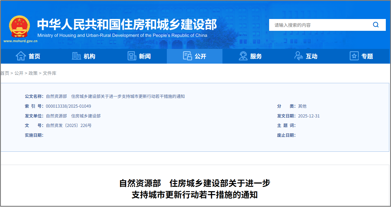 1月20日,自然资源部召开例行新闻发布会,联合住房城乡建设部发布《关于进一步支持城市更新行动若干措施的通知》。《通知》,旨在落实中央关于城市高质量发展和持续推进城市更新行动的要求,从规划、用地、资产、登记、历史遗留问题等方面提出6大方面11条具体措施,破解城市更新政策堵点,强化规划与土地政策融合支撑。