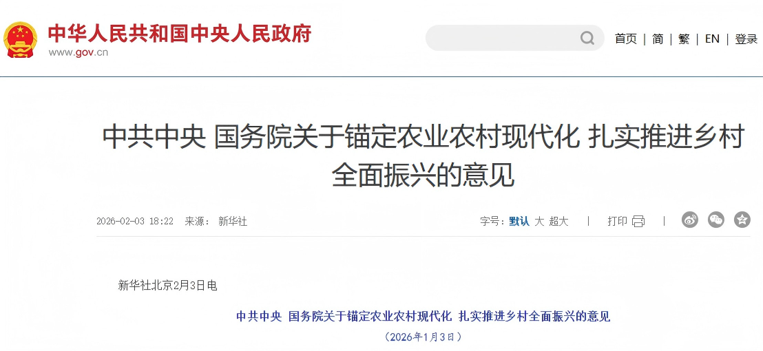 最新┃2026中央一号文件!五大关键词解读!(建议收藏)